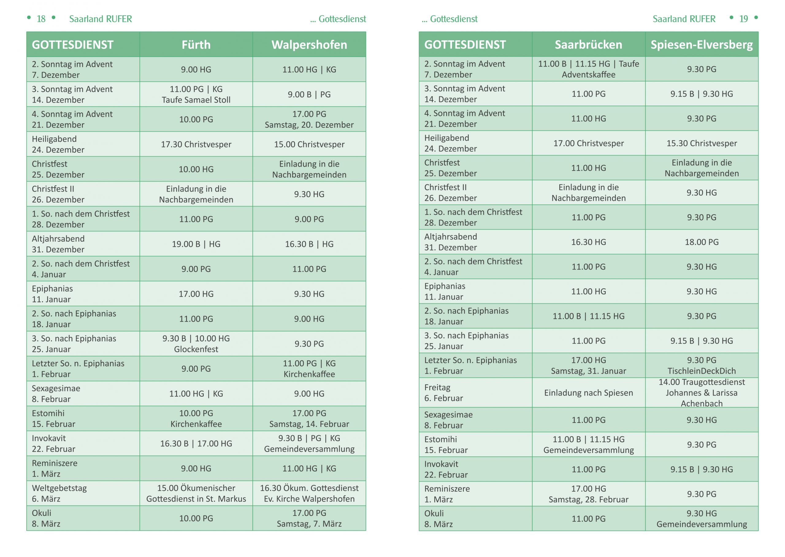 Gottesdienste auf einen Blick