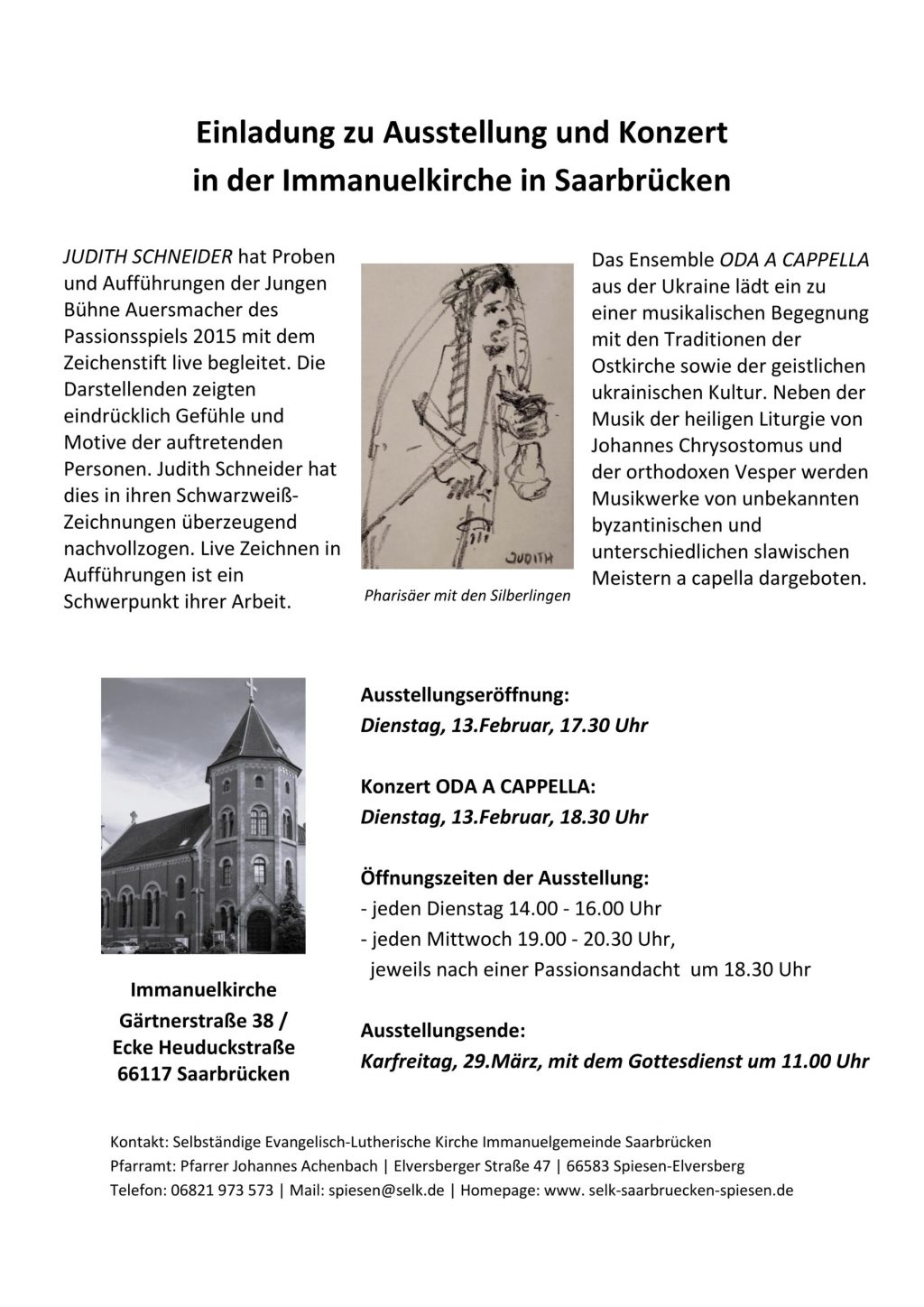 Neue Einladung zu Ausstellung und Konzert in der Immanuelkirche in Saarbrücken